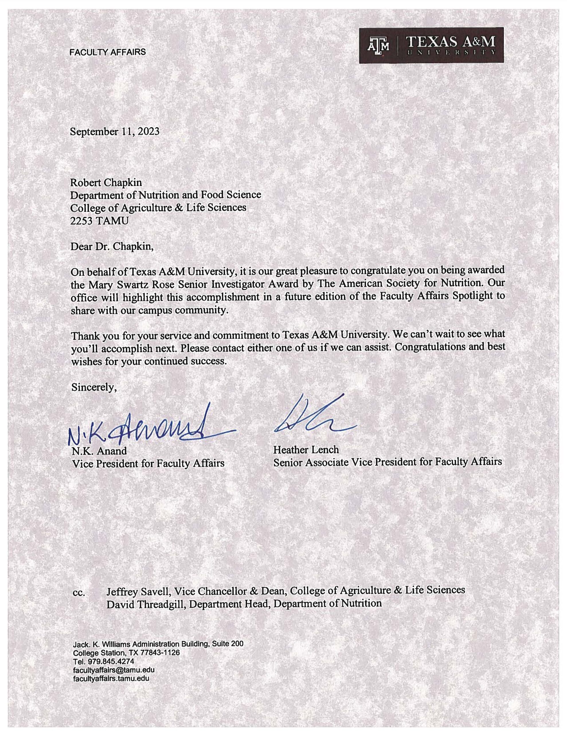 Robert-Chapkin-ASN-award-TAMU-letter